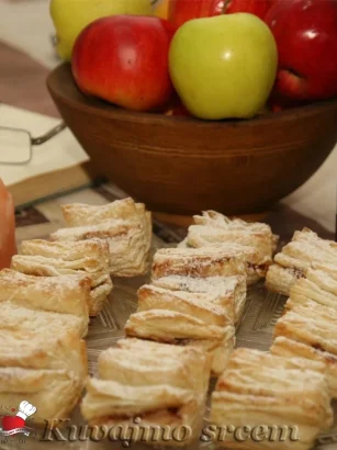 Taj nezaboravni miris kolača koji vraća u neko davno vreme, a sećanja naviru… Potrebno je: 3 žumanca, 2 veće kašike ljute rakije – šljivovice, 500 g brašna, 200 ml hladne vode, 1/2 kašičice so. Premaz: …
