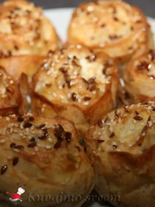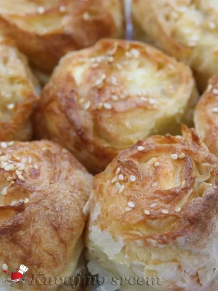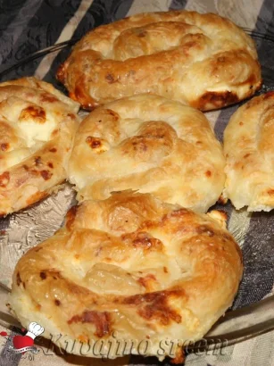 Potrebno je: 1/2 kg gotovih kora od heljde, 1/2 kg kravljeg sira, 1 jogurt, 2 jaja, 1 dl ulja, 50 g griza, 1 prašak za pecivo. Priprema: Umutiti jaja sa jogurtom, uljem i praškom …