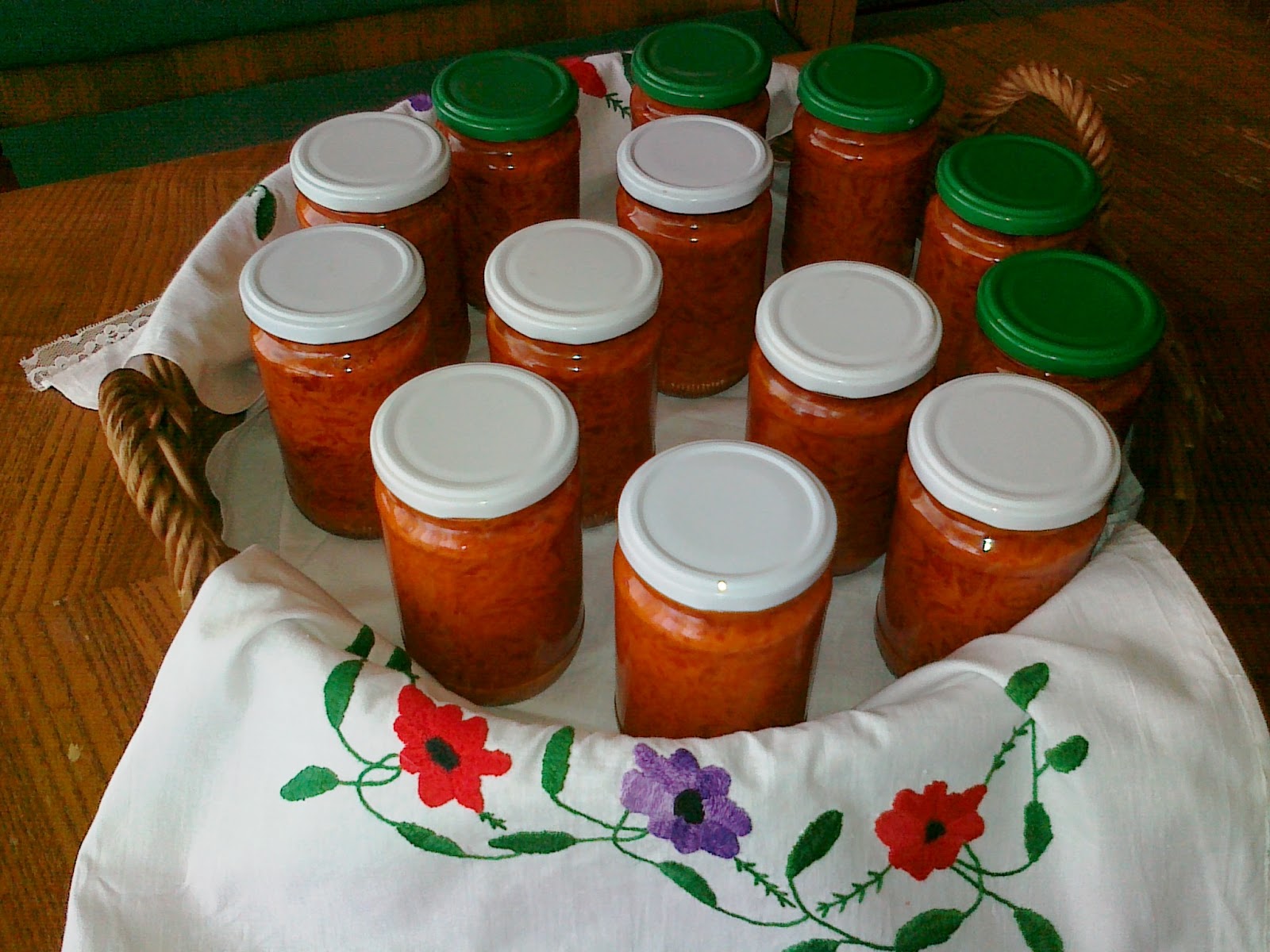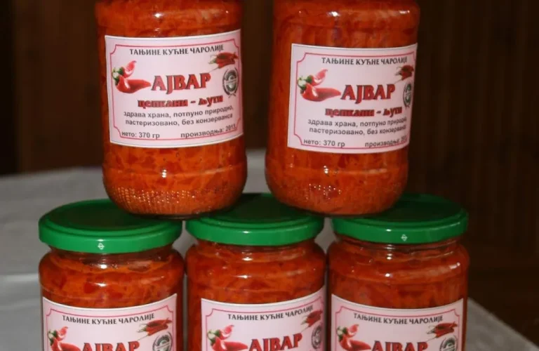 Ajvar naliti vruće i čiste zagrejane u rerni staklene teglice i odmah zatvoriti metalnim novim zatvaračima. Teglice umotati u novinski papir, ređati ih u neku posudu ili kutiju i dobro ušuškati, pokriti, da se postepeno hlade. Posle dan – dva teglice spremiti u ostavu. Prijatno!
