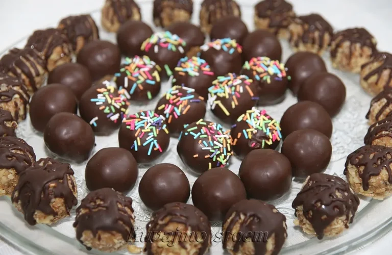 Umutiti margarin sa šećerom u prahu, dodati mleveni keks, pečene i seckane lešnike, sok od narandže i 100 g rendane čokolade. Masu dobro sjediniti i praviti kuglice. Posebno otopiti 200 g čokolade sa 3 kašičice ulja, kuglice utapati u dobijenu glazuru i ostaviti da se čokolada stegne. Kuglice se uvek mogu dekorisati na više načina… Dobro ohladiti i poslužiti, sigurno će nestati za tren 🙂