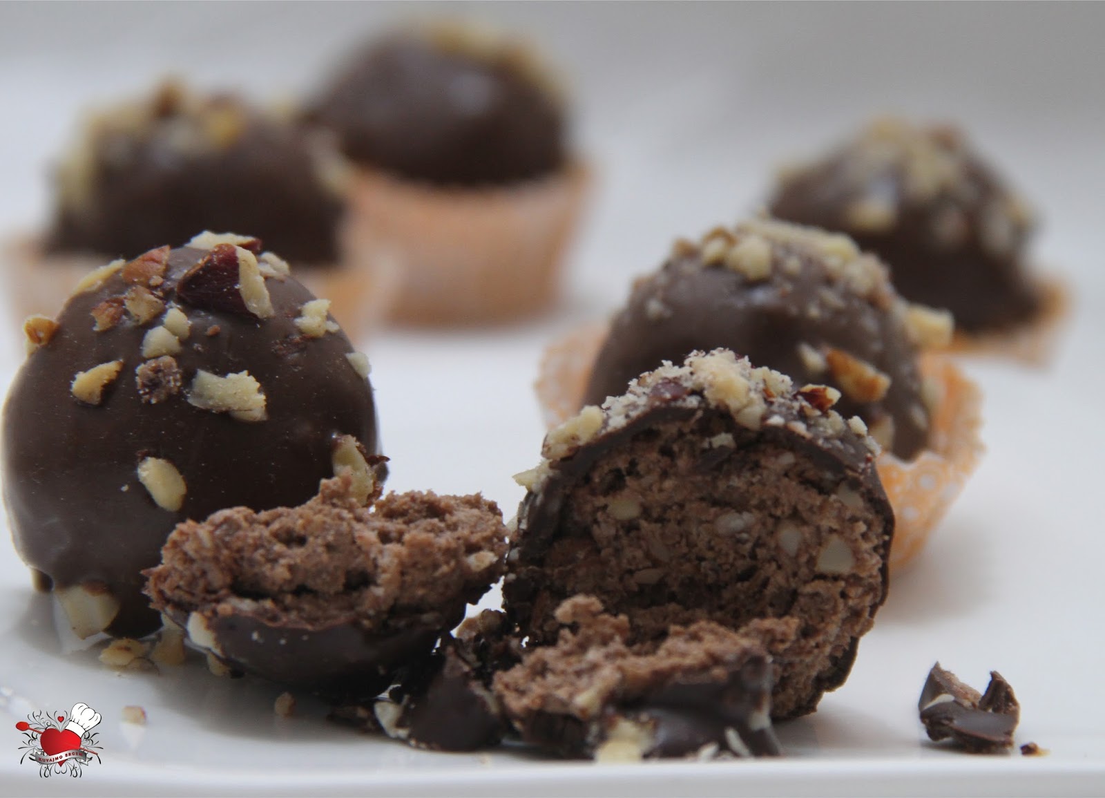 Otuda se i stvorila želja da probam kuglice koje po sastavu i receptu mogu da ,,liče,, na Ferrero. Dugo se već par sličnih recepta nalaze u mom rokovniku, odakle potiču više ni sama nisam sigurna, ima ih nekoliko, svi su vrlo jednostavni, sa brzom pripremom i odličnim ukusom. Jedan od tih recepata isproban je baš ovih dana i mogu reći kuglice su odlične, nisu baš kao Ferrero, ali liče, zaita liče. Baš te kuglice su našle svoje mesto na tacni sa ostalim kolačima na našoj slavskoj trpezi. Oduševljenje naravno nije izostalo, pa otuda i želja da sa vama podelim i ovaj recept.