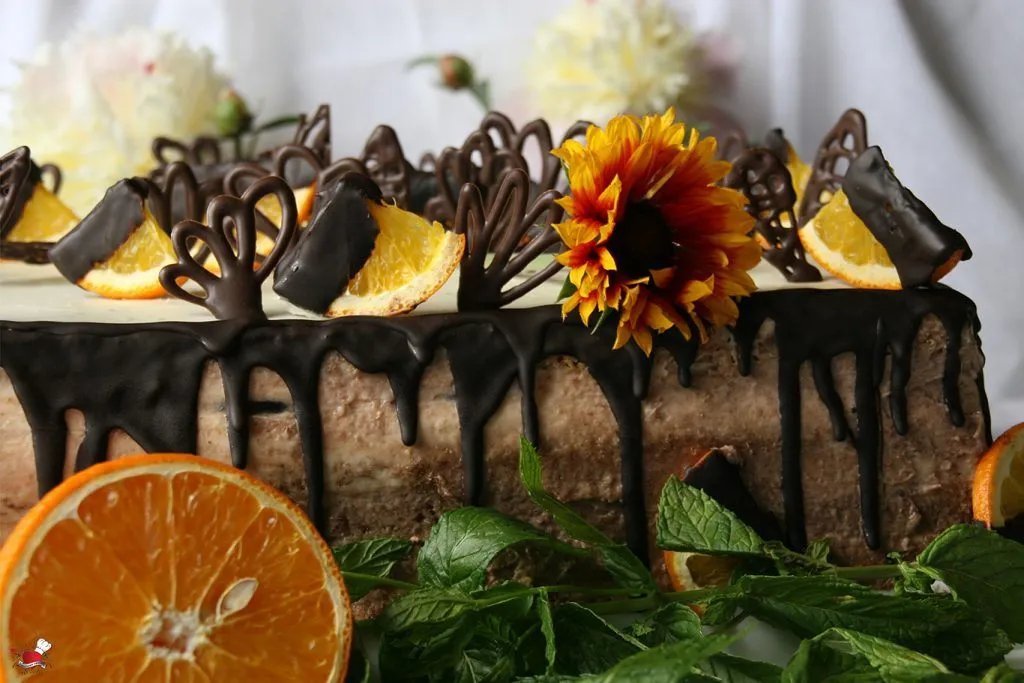 Čokoladu izlomiti na sitnije komade i otopiti je na pari, kada se otopi 2/3 čokolade, posudu skloniti sa vatre i mešati da se otopi cela količina čokolade. Otopljenu čokoladu naliti u dresing kesu, na tacni staviti papir za pečenje i po želji na njemu iscrtati ukrase. Tacnu staviti na hladno ili u frižider da se čokolada dobro stegne. Kriške pomorandže takođe preliti otopljenom čokoladom i ostaviti da se stegnu na papiru za pečenje. Tako pripremljene čokoladne ukrase upotrebiti za dekoraciju.