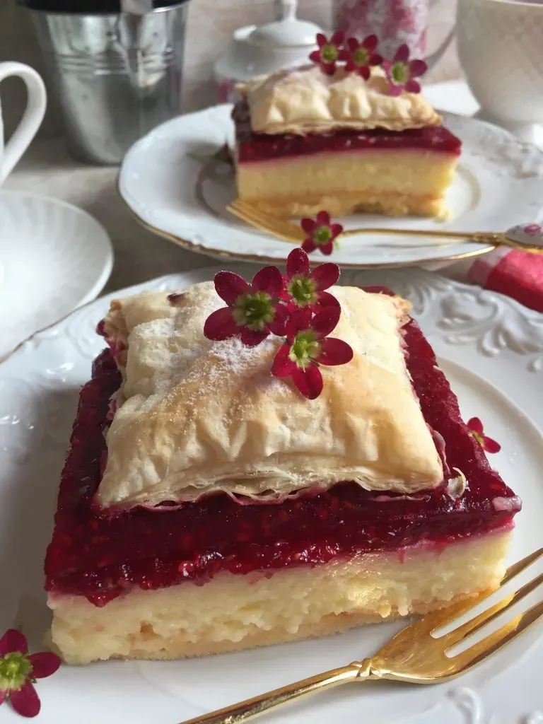 Po želji se mogu upotrebiti 2 lisnata testa za donju i gornju koru. U ovom slučaju ja sam donje lisnato testo zamenila pečenom korom, a vi možete pripremiti kako više volite, to ostavljam da sami odlučite.