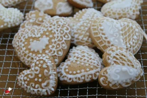 Ohlađene kolačiće po želji možete preliti glazurom… Glazuru je najbolje praviti u manjim količinama, polako dodavajući vrelu vodu u šećer u prahu, mešajući sve dok se ne dobije gusta masa.