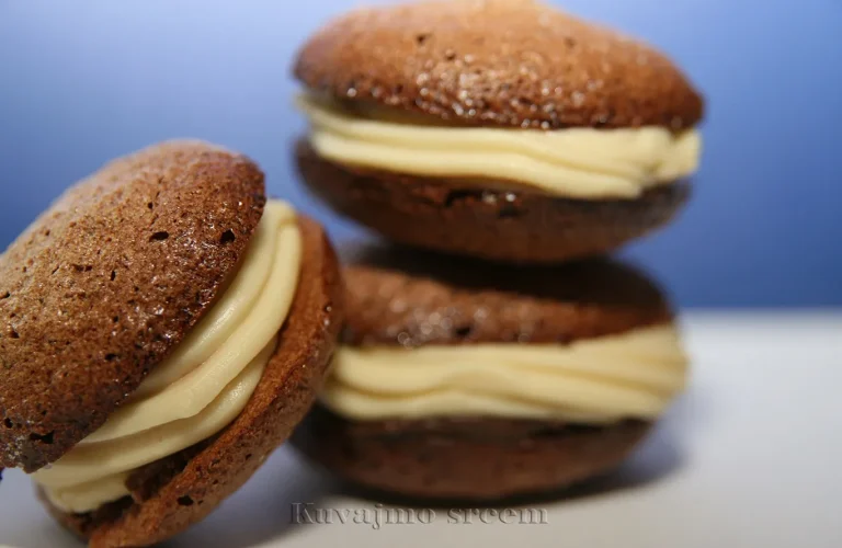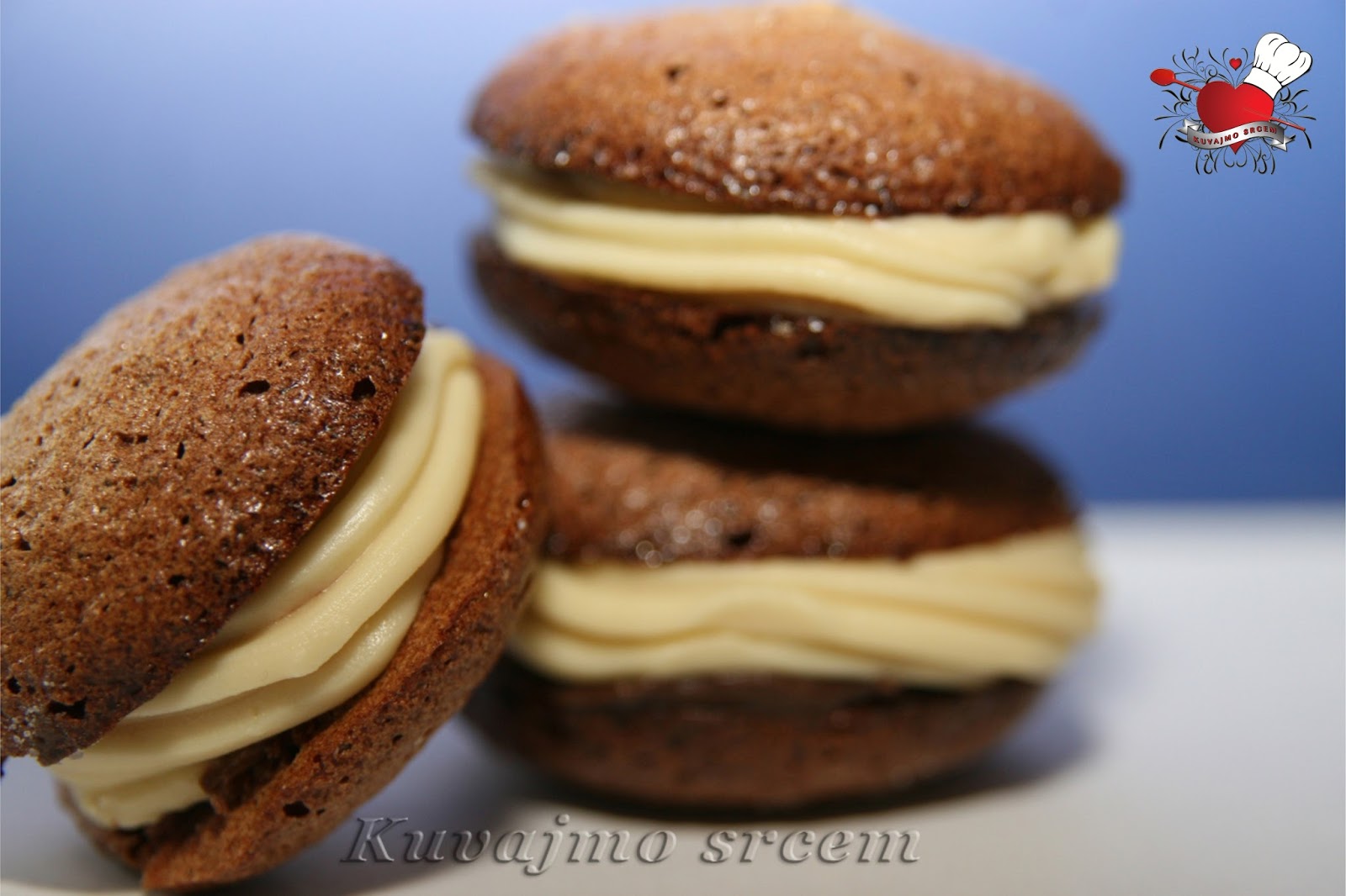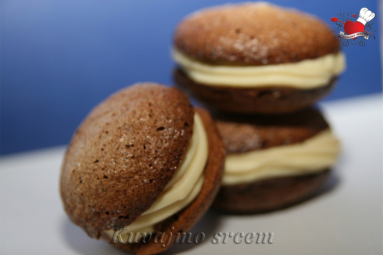 Nakon pečenja puslice ostaviti da se ohlade i tek onda ih skloniti sa papira, naneti na svaku polovinu krem i poklopiti drugom puslicom vrlo nežno, da puslice ne popucaju od jačeg pritiska. Poslužiti uz čaj ili kafu.