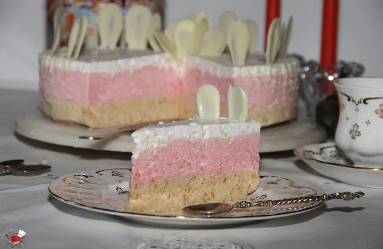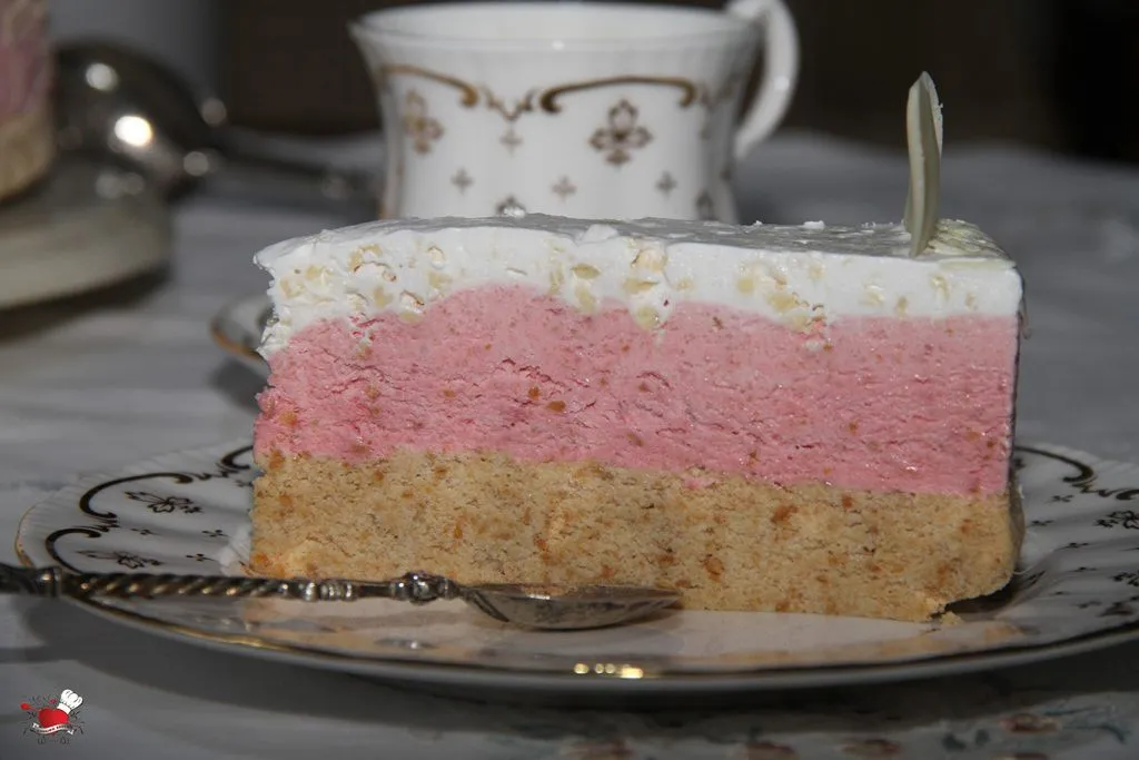 Priprema: Pripremiti okrugli kalup sa obručem prečnika 26 cm. Dno kalupa obložiti papirom za pečenje, kao i stranice. Da bi se papir lakše zalepio za stranice kalupa, potrebno ih je premazati blago margarinom i onda obložiti papirom. Tako će papir ostati fiksiran za ivicu kalupa dok nalivate pripremljene filove.