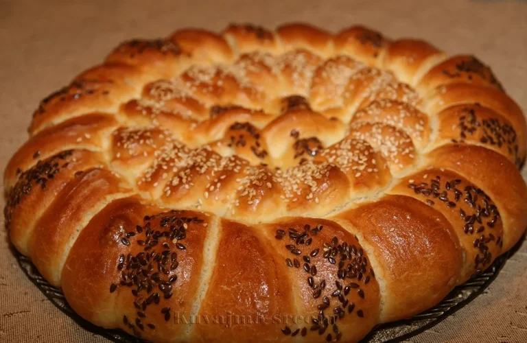 Pogaču umotati i ostaviti desetak  minuta pre služenja. Prijatno!