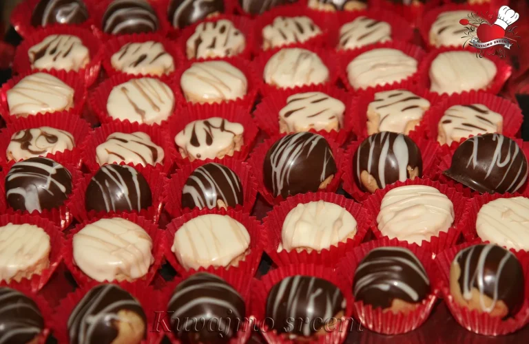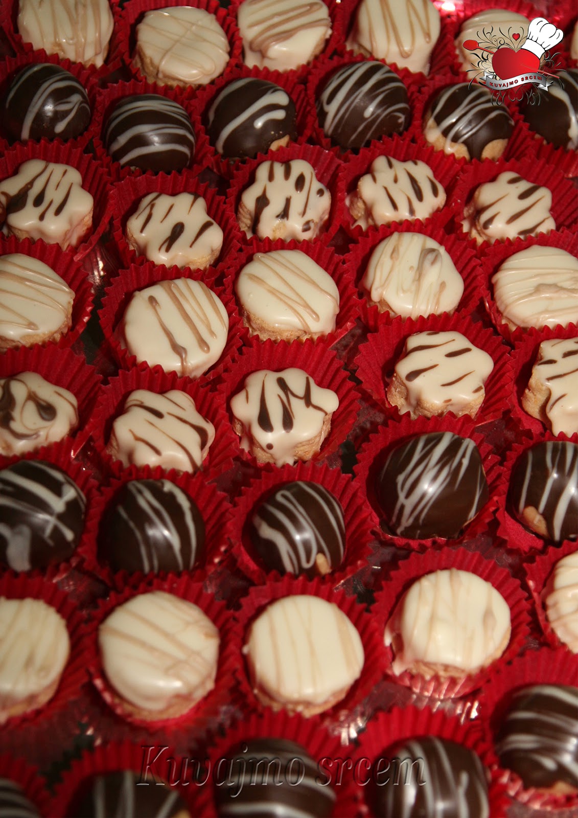 Umutiti penasto margarin sa šećerom u prahu, dodati mleveni keks i mleveni kikiriki, sve sjediniti i dodati malo soka od narandže da se dobije lepa homogena masa. Masu dobro sjediniti i istanjiti na debljini od 2 cm na dasci koju je potrebno obložiti folijom ili papirom za pečenje, uz pomoć papira praline se lakše odvajaju od podloge. Željenim modlama iseći masu i ostaviti na papir za pečenje da se masa malo osuši, od ostatka mase napraviti kuglice. Otopiti čokoladu sa malo ulja na pari, kolačiće utapati u čokoladu i dekorisati po želji.