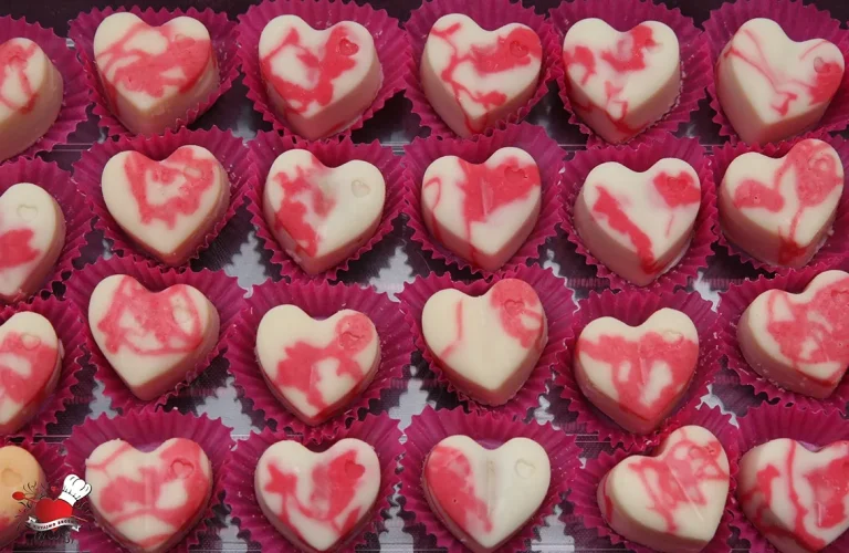 Otopiti na pari (ili u topilici u koliko je imate) čokoladu sa uljem, jedan deo odvojiti i dadati željenu količinu boje. Otopljenu čokoladu uliti u dresing džak ili špric, pripremiti obadve mase i nanositi naizmenično belu i obojenu čokoladu u kalup. Ostaviti da se prvi sloj malo stegne, ponoviti dodavanje  bele čokolade i po želji dodati punjenje…
