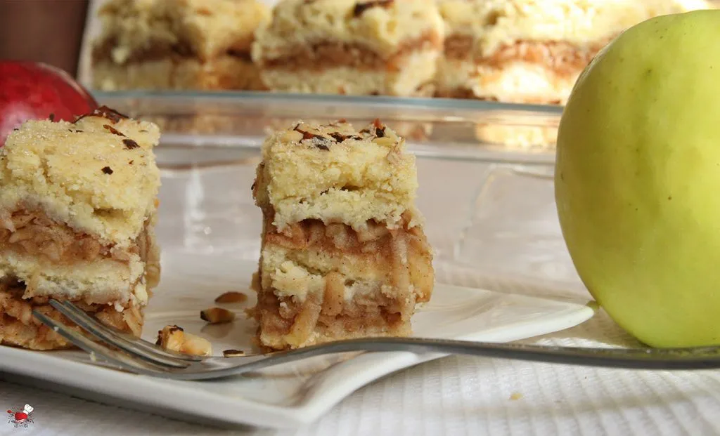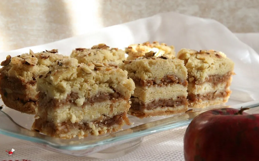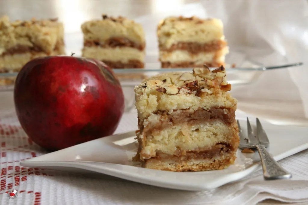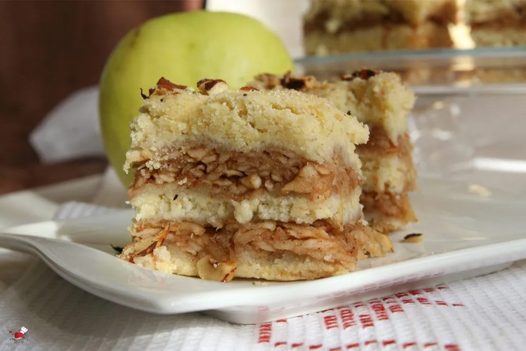 Najčešće me oduševljavaju poslastice koji u sebi nose miris bakine kuhinje i ne samo to, one u sebi nose miris starine, miris prošlosti i sećanje. Ovo je recept koji se čuva, pamti, piše i prepisuje, da se ne zaboravi, da se ne izgubi i ne padne u zaborav. Ovo je taj prhki mirisni kolač iz detinjstva koji su pripremale naše bake, baka – tetke, strine, ujne…. recept koji se prenosi sa kolena na koleno, da se ne zaboravi, ne izgubi… ne, to ne bi bilo fer… Osnovni sastojci recepta su isti kao iz bakine kuhinje (recept sam davno dobila od moje drugarice Danijele, hvala joj na tome, to je taj ukus koji pamtim, koga se sećam) ja sam samo dodala par sastojaka da još malo obogatim ukus, dodam svoj lični pečat ovoj starinskoj poslastici koja miriše na cimet i vanilu. Miriše na jabuke iz starog voćnjaka, na one prave domaće, nesavršene, pomalo pegave, a slatke da sve pršti od slatkoće. E baš takve jabuke dobih pre par dana na poklon, da samo znate kolika je bila moja radost, jer tih jabuka je sve manje, nema ih, nestaju…