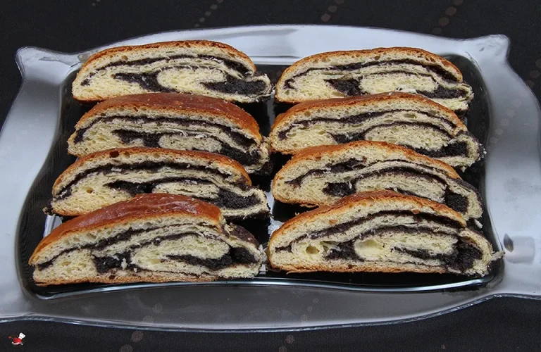 U jednoj posudi za mućenje pomešati suve sastojke brašno, šećer i so, naliti pripremljen kvasac i dodati jaja. Sve umutiti mikserom nastavcima za testo. Tako pripremljeno testo ostaviti desetak minuta da miruje. Pripremljen maslac sobne temperatutre iseći na manje komade (4 – 5 komada). Komadiće maslaca dodavati postepeno u pripremljeno testo uz stalno mešanje mikserom koji je podešen na srednjoj brzini. Svaki put dodat maslac treba fino sjediniti sa testom i tek onda dodati novi komad maslaca. Kada je sav maslac upotrebljen mikserom mešati testo još nekih 10 minuta, da testo postane glatko, sjajno i mekano bez grudvica. Po potrebi možete dodati malo brašna, ali vodeći računa da se ne doda previše. To zavisi od samog brašna koje se koristi i od krupnoće jaja. Jednu posudu fino pouljiti sa strane kao i samo dno posude i u njoj prebaciti kuglu od testa. Pokriti samolepljivom folijom i ostaviti ga u toploj prostoriji dok se testo ne udvostruči oko 1,5 – 2 sata. (u zavisnosti koliko je prostorija topla, testo može brže ili sporije da nadođe). Kada primetite da je testo gotovo spremno za dalji rad, treba pripremiti nadev od maka.