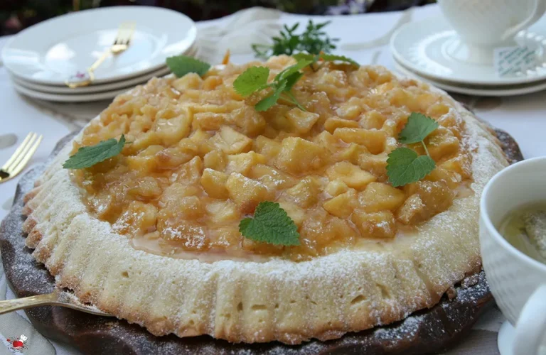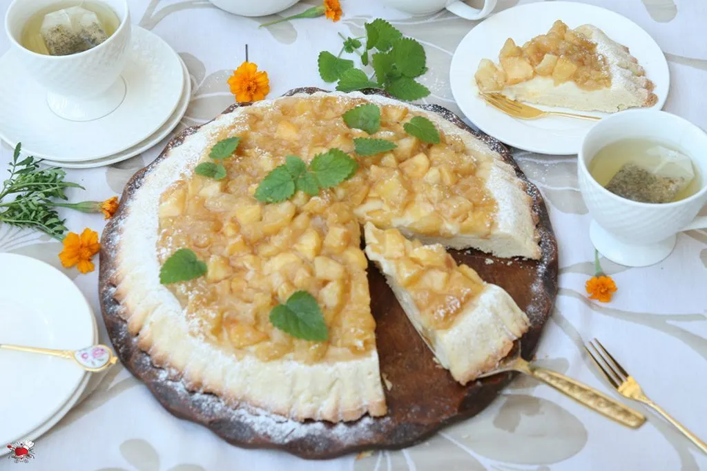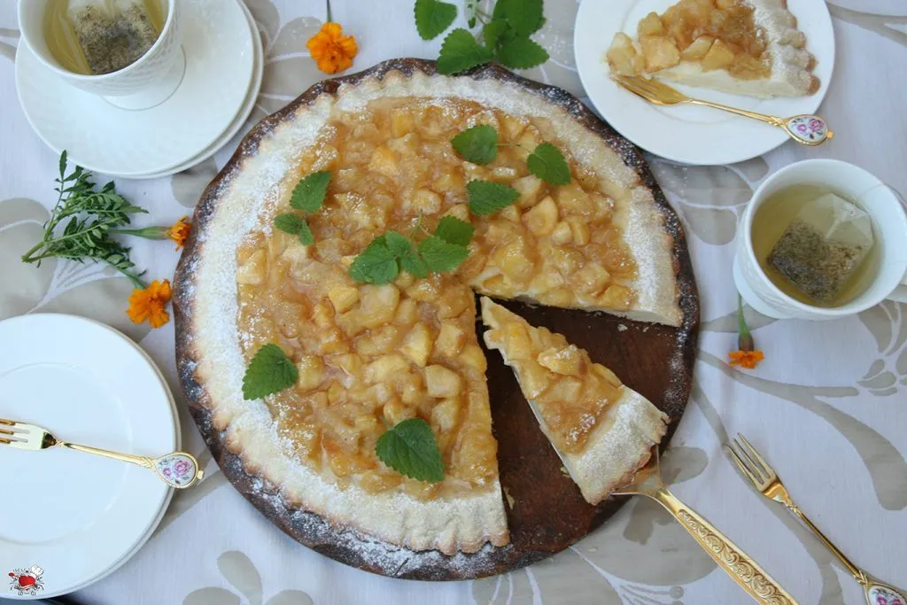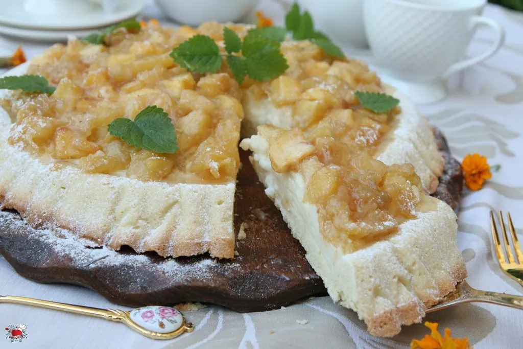 Jabuke iseći na sitnije komade, u posudu staviti šećer i maslac da se blago karamelizuje, dodati jabuke i izdinstati ih, da se i one same blago karamelizuju i omekšaju. Dodati jednu kašiku gustina i ostaviti da se hladi, tart filivati sa mlakim kremom.