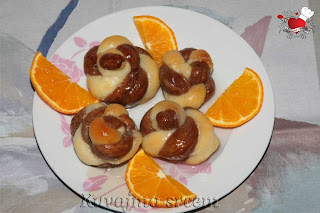 Pripremljen kvasac dodati u posudu sa brašnom, kao i ostale sastojke, prašak za pecivo, jaja, ulje, rendanu koru limuna, od te mase umesiti glatko ujednačeno testo i podeliti ga na dva jednaka dela. U jedan deo testa dodati kakao i dobro izradite rukama, da se testo ne bi zalepilo za podlogu po potrebi dodavati brašno. Od tamne i svetlije mase testa odvojiti po 25 – 30 loptica (u zavisnosti koliko velike kolačiće želite). Svaku lopticu testa ( jednu braon i jednu belu) razvući u valjke jednakih dužina. Valjke umotati u pletenicu i oko prsta smotati u ,,turban,, kraj testa zavući u srednji deo ,,turbana,, da se prilikom pečenja ne bi otvorio, složiti u pleh obložen papirom za pečenje i ostaviti da narastu 10 – 15 minuta. Kolačiće peći u zagrejanoj rerni na 200 stepeni 20 – 25 minuta, (u zavisnosti od jačine rerne) vodeći računa da ostanu svetlije boje…