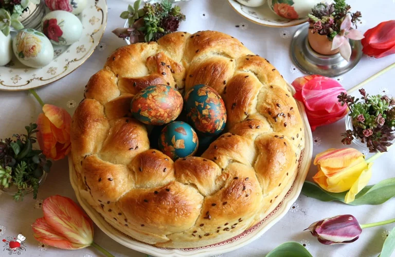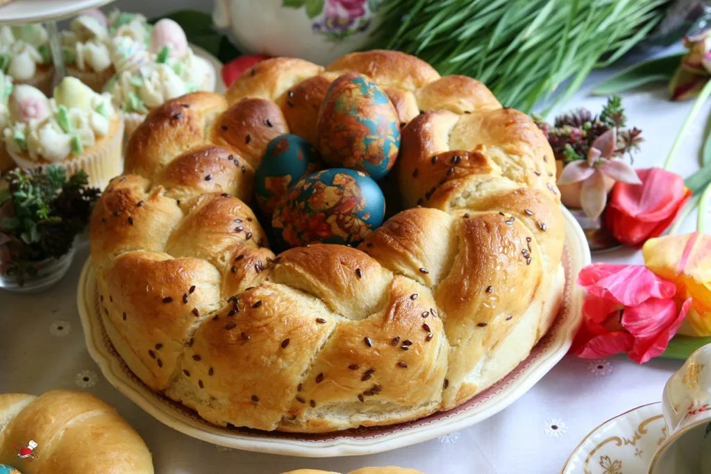 Pečenu pletenicu pokriti i ostaviti da se malo ohladi do služenja. Pre služenja u središnji deo dodati nekoliko farbanih jaja.