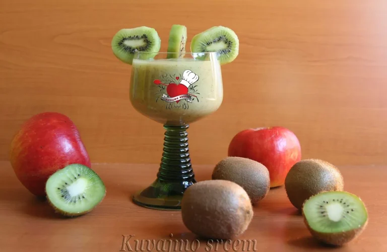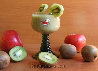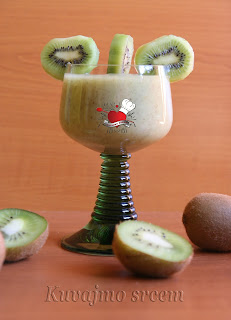 Voće očistiti i iseći na sitnije komade, staviti u blender, dodati mleko ili vodu u odnosu 1/3 od količine voća u blender. Sve izmiksati 20 – 30 sekundi da smoothie postane kremast. Smoothie naliti u čaši željenog oblika, dodati par koluta kivija za dekoraciju i poslužiti.